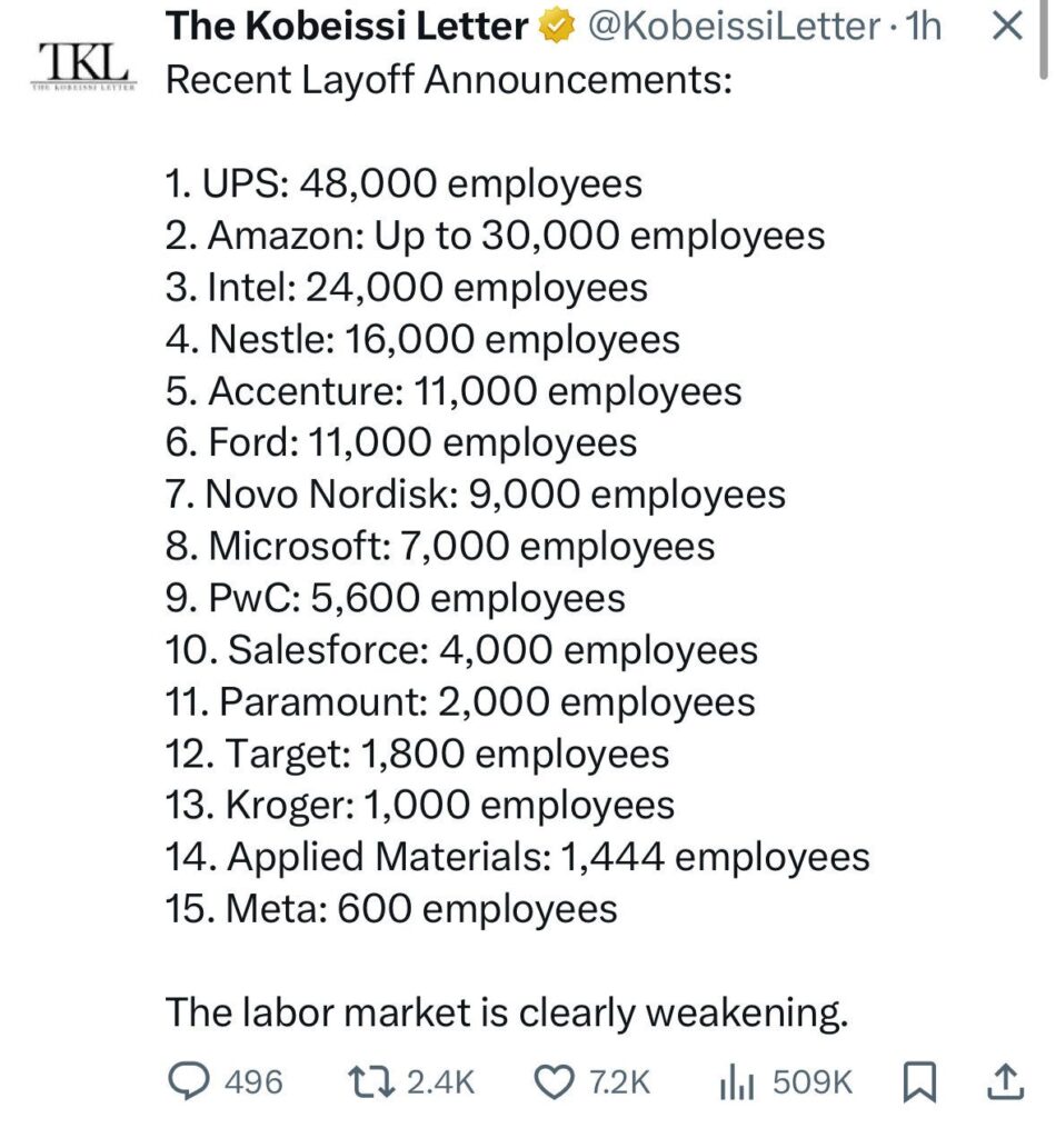 La semana pasada leí en x.com una escalofriante lista de despidos masivos. Los números son brutales.